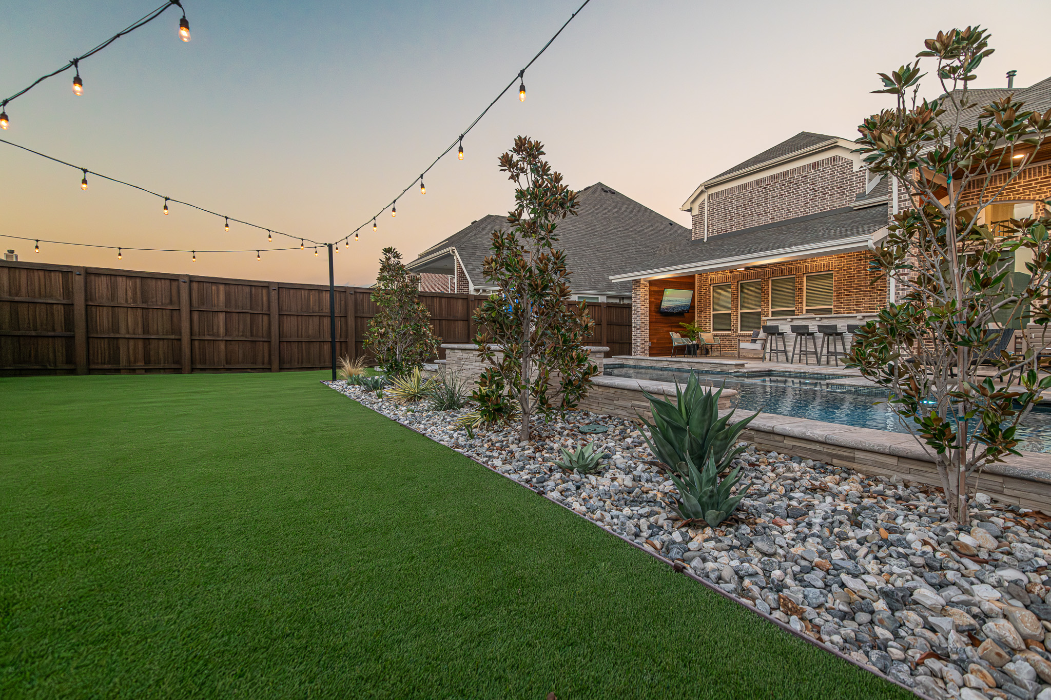 The turf in this yard is perfect for roughhousing or letting pets run and helps them make the most of the limited space in their backyard.